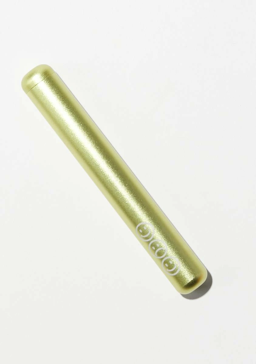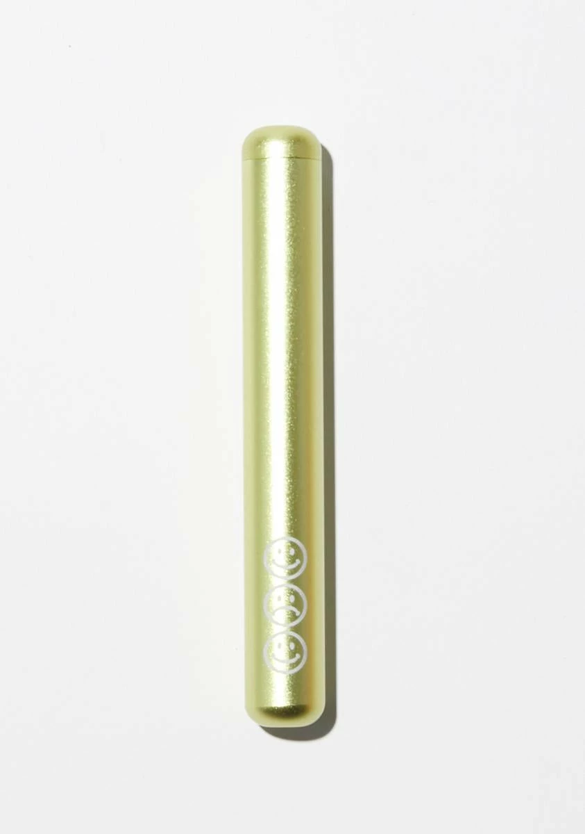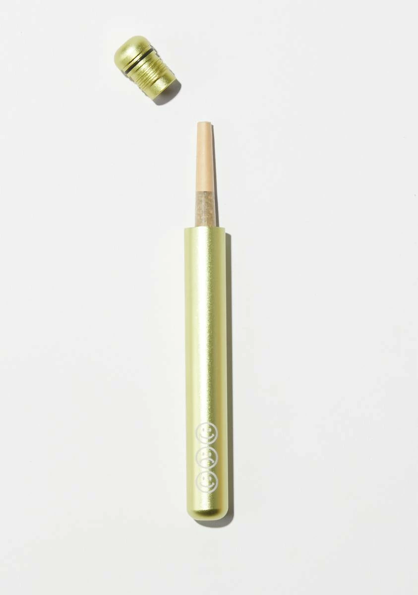 has a metallic aluminum design with a secure screw top lid that opens to store a king or 100 size joint.