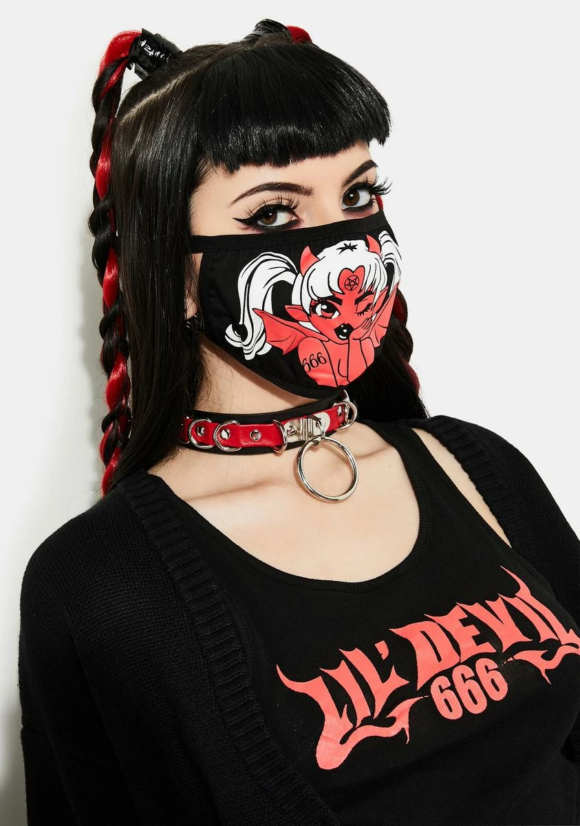 cuz evil girls have more fun! This hellbound protective face mask has a devil girl graphic on the front and stretchy earbands for a comfy, secure fit.