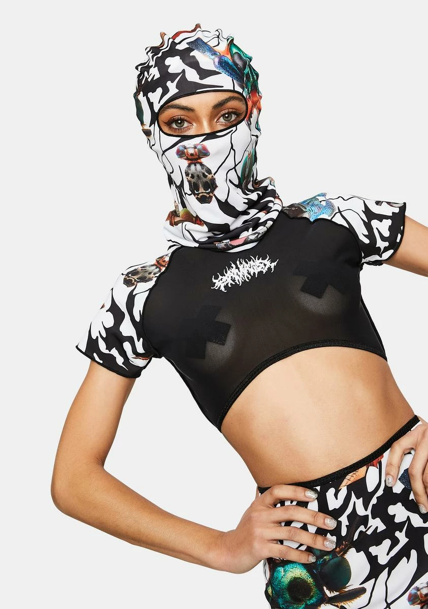 Damage White Abstract Ski Mask