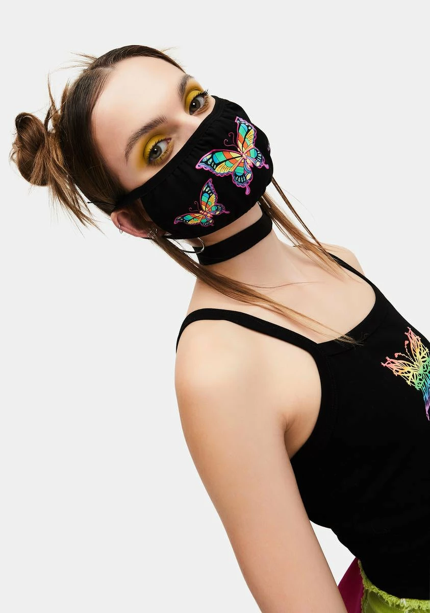 DELiA*s By Dolls Kill Frenzy Flutter Rainbow Butterfly Face Mask