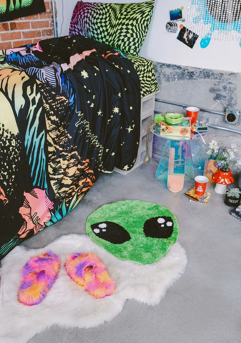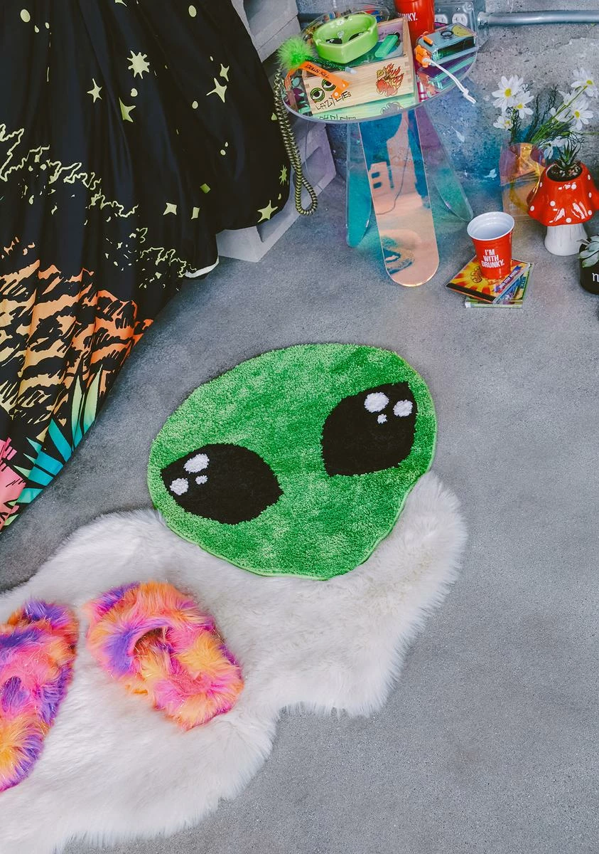 cuz you’re not from this planet! This tufted bath mat comes shaped like an alien head with an anti-slip rubber grip backing.