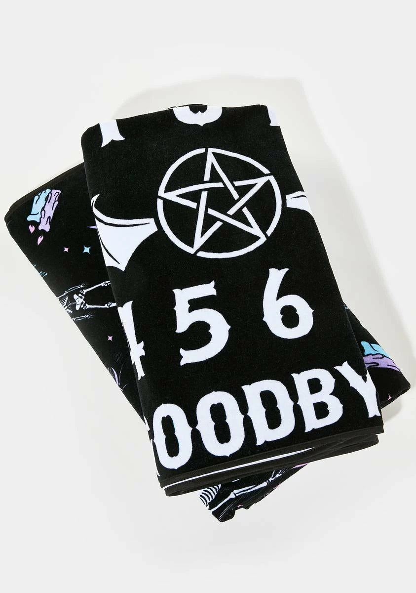 cuz they have a message for you. Take those ghouls out for some sunshine in this beach towel that has a spirit board print and is perfect for your summer getaway!