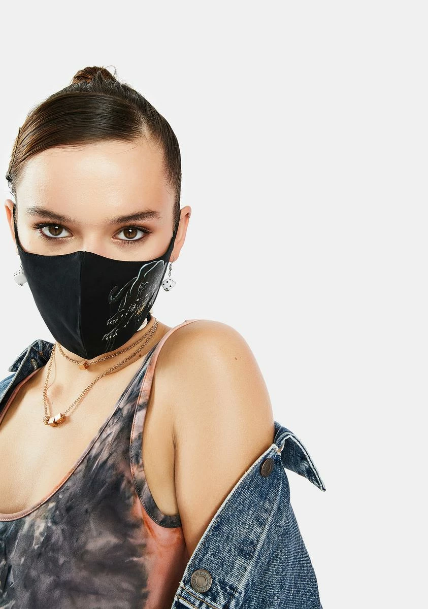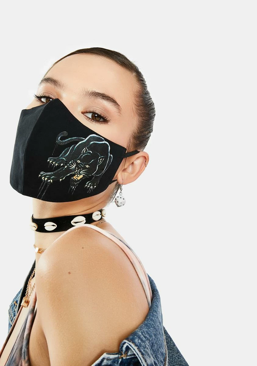because being health conscious is badass. This face mask features a panther print, classic brand graphics and logo, inside pocket with changeable filter, and adjustable ear straps.