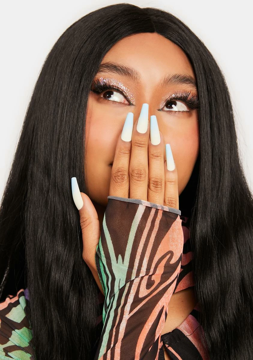 check me out! These press on nails have an extra long coffin shape, a matte finish, and come in an adorable pill bottle package with 24 individual nails, glue, and adhesive strips.