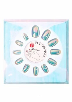 check me out! These press on nails have a long coffin shape and come in an adorable pill bottle package with 24 individual nails, glue, and adhesive strips.