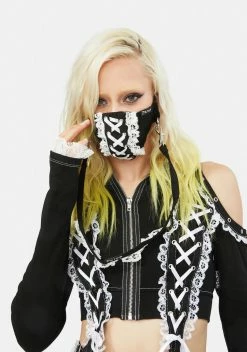 cuz you’re a cosmic queen. This face mask has elastic ear loops and a ruched holographic construction.