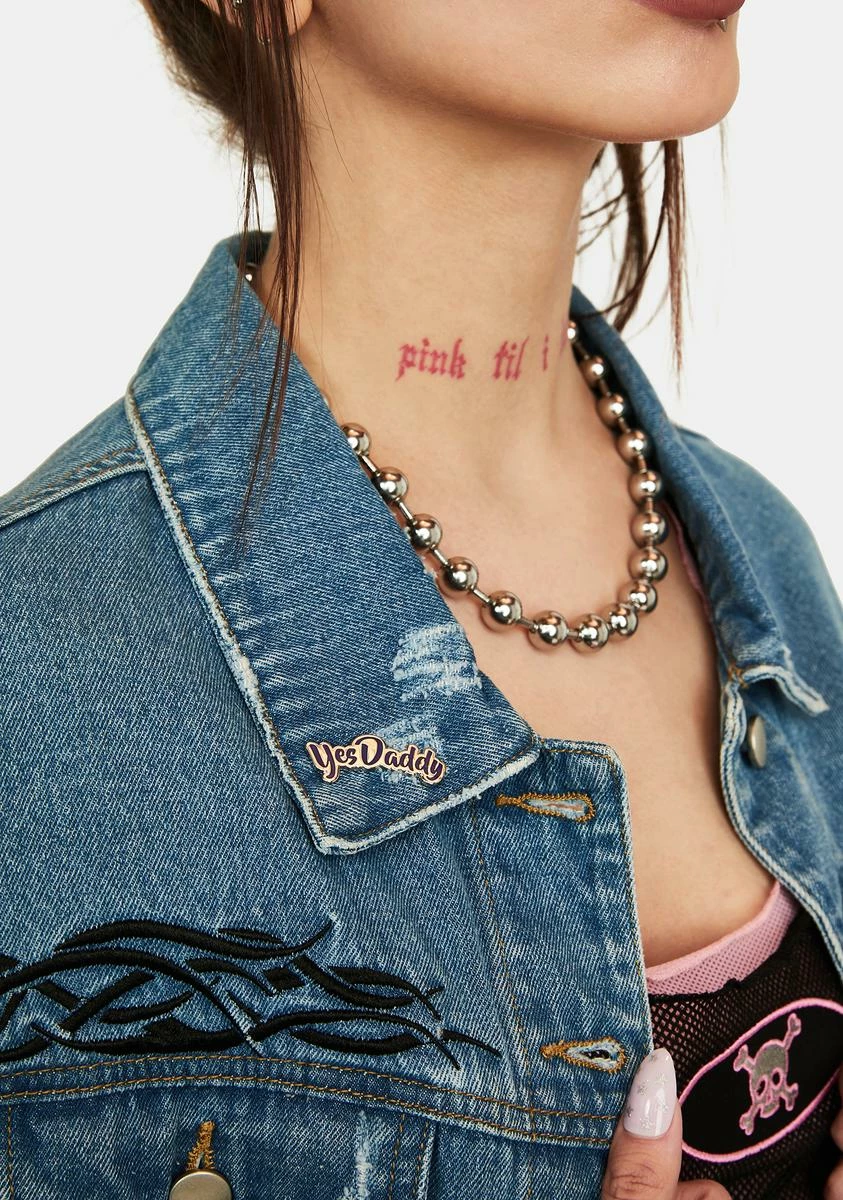 whatever you say. This pin takes the shape of the text ‘yes daddy.’