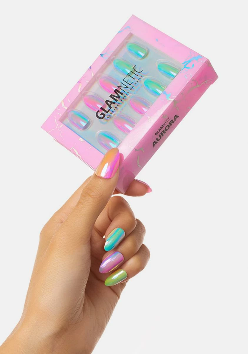 you’re classy and sassy. These reusable press on nails have a pointed almond shape and come with 24 nails in various sizes, nail glue, a nail file, and a cuticle stick.