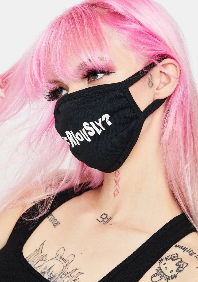 just my luck… Bring the attitude with this witty protective face mask that has a graphic on the front that says ‘Seriously?,’ a soft antimicrobial construction, an inner pocket to insert filters, and stretchy ear bands.