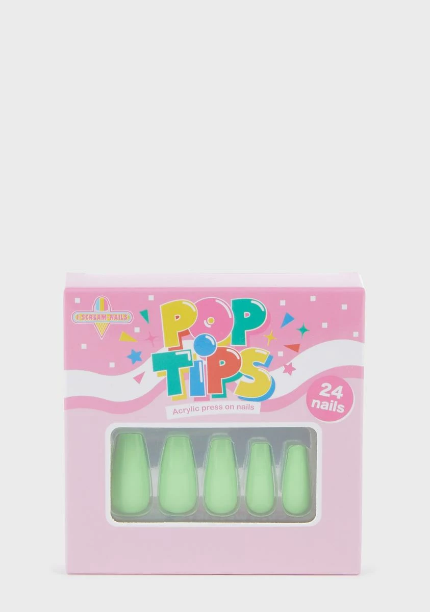 I SCREAM NAILS Fluro Green Coffin Shaped False Nails