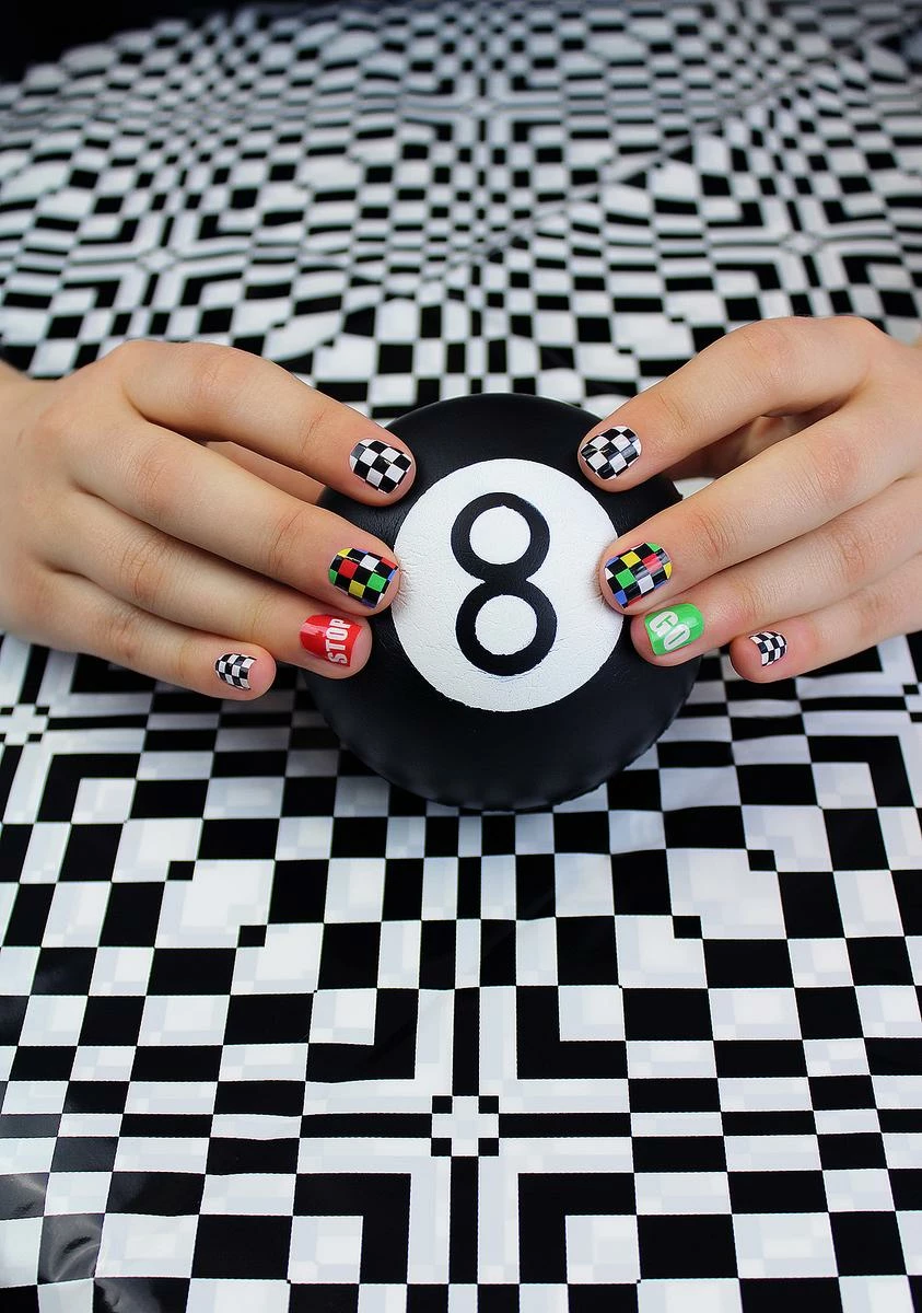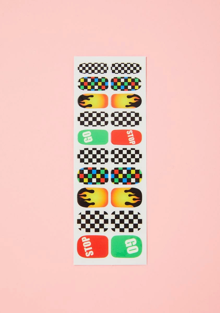 cuz ya neva let a speed limit slow ya down. Get insane nail art without the hassle with this glossy, race car themed nail wrap set that includes 20 self adhesive stickers N’ a nail file to get the perfect fit.