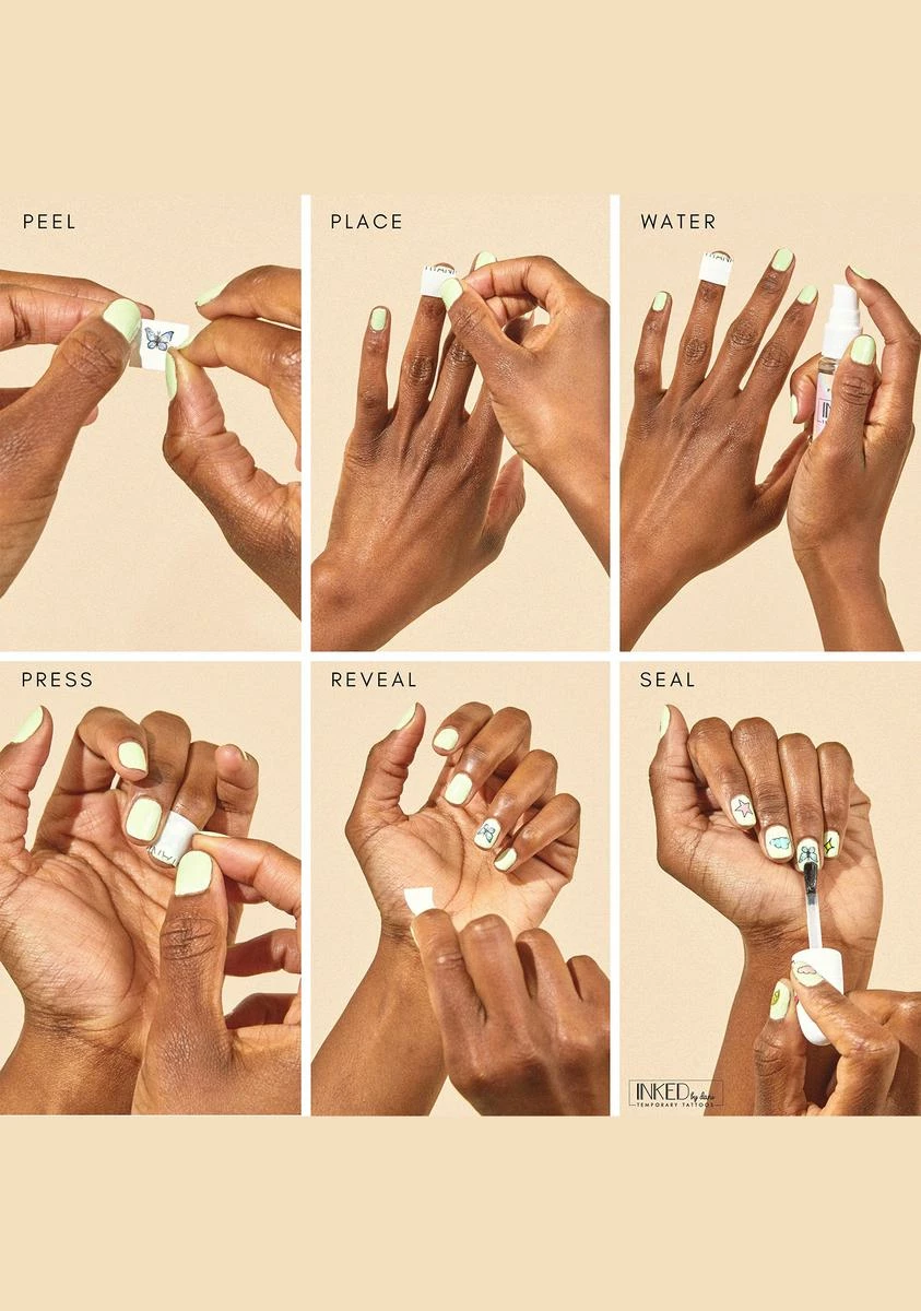 got you a salon manicure at home. These hand-drawn mini tattoos come in a bright, floral theme, are cruelty-free and non-toxic, and apply just with water.