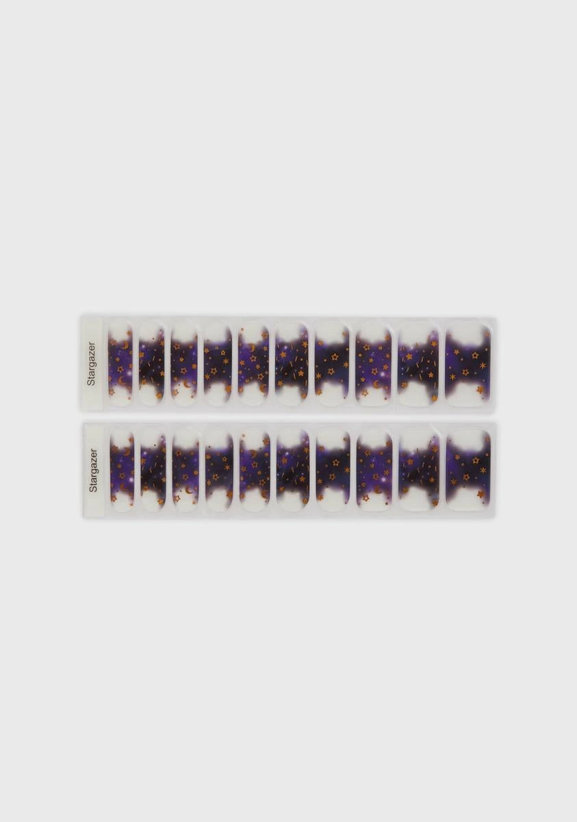 cuz be cosmic bb! These semicured nail gellies are easy to apply, can last up to 2 weeks, and have a gold star pattern.