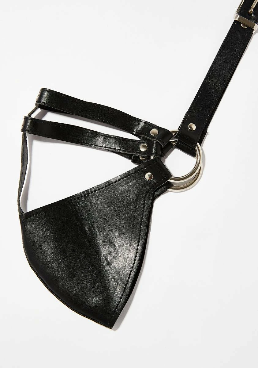 cuz you’re always riding dirty babe! Lead the pack in this dope vegan leather harness face mask that has strap details with O-ring accents N’ a buckle closure.