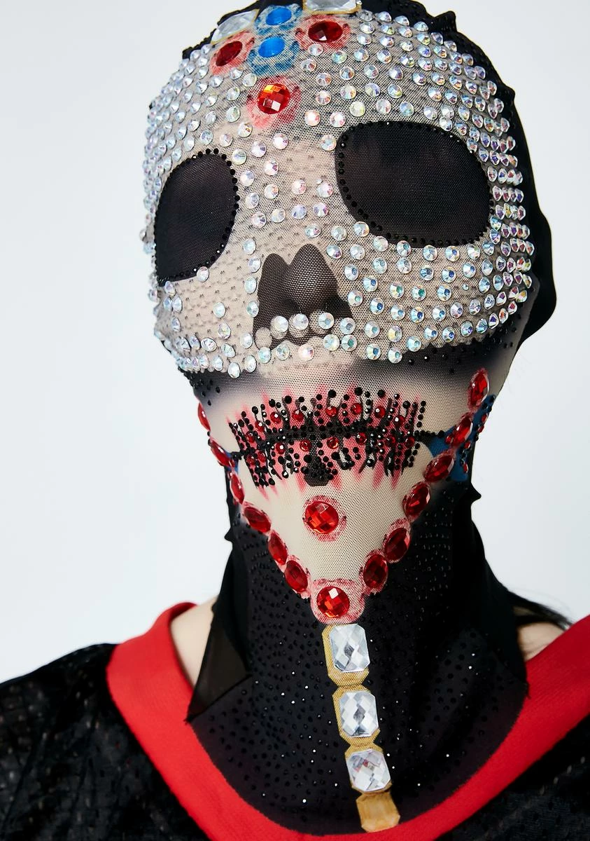 cuz this ainât no ordinary skull mask. This skull mask is bedazzled all over and mesh inserts for your eyes and nose.