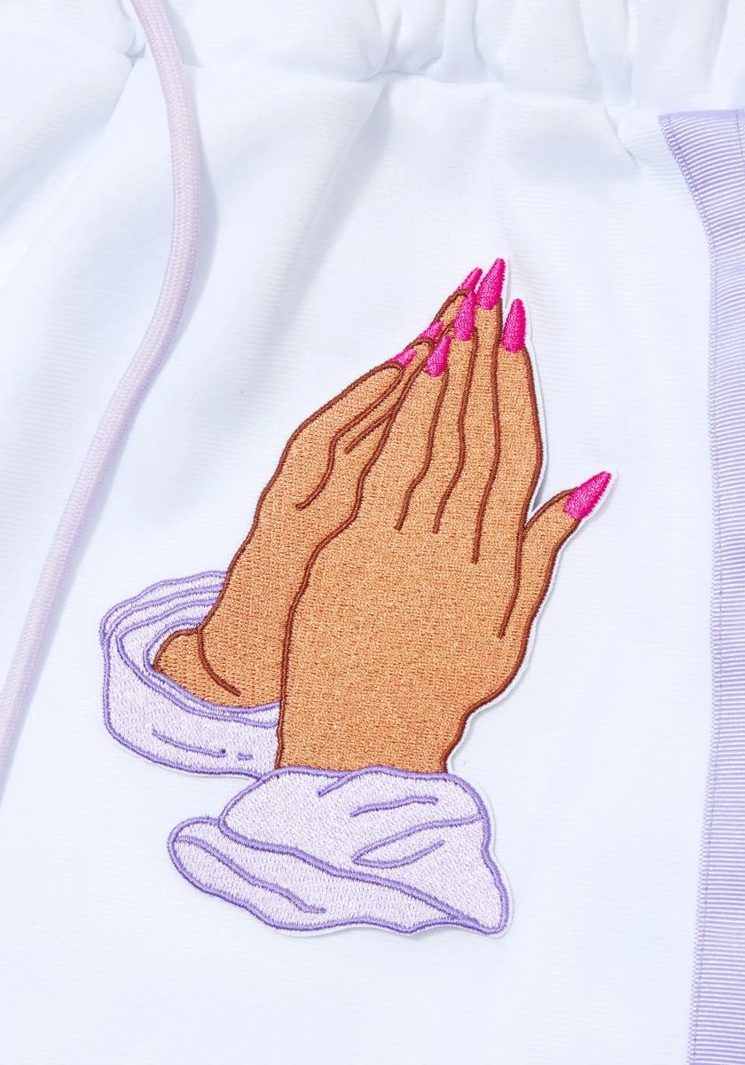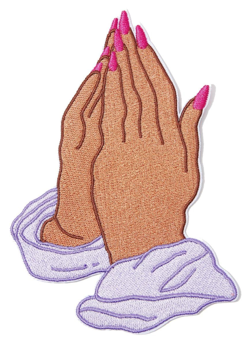 put some respeck on those prayers, babe. This iron-on embroidered patch is of praying hands with a manicure so you know it’s real.