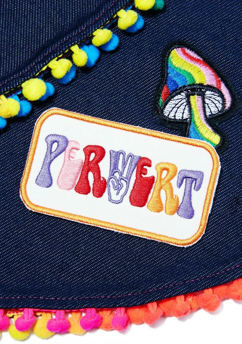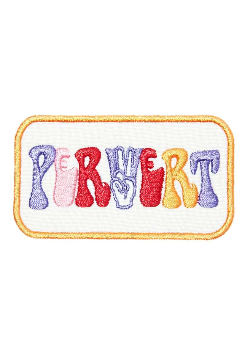 all of our favorite people are pervs, especially youâ¦.This vintage-inspired patch features multi-colored print that reads âPERVERTâ with a hand in a peace sign in place of the V!