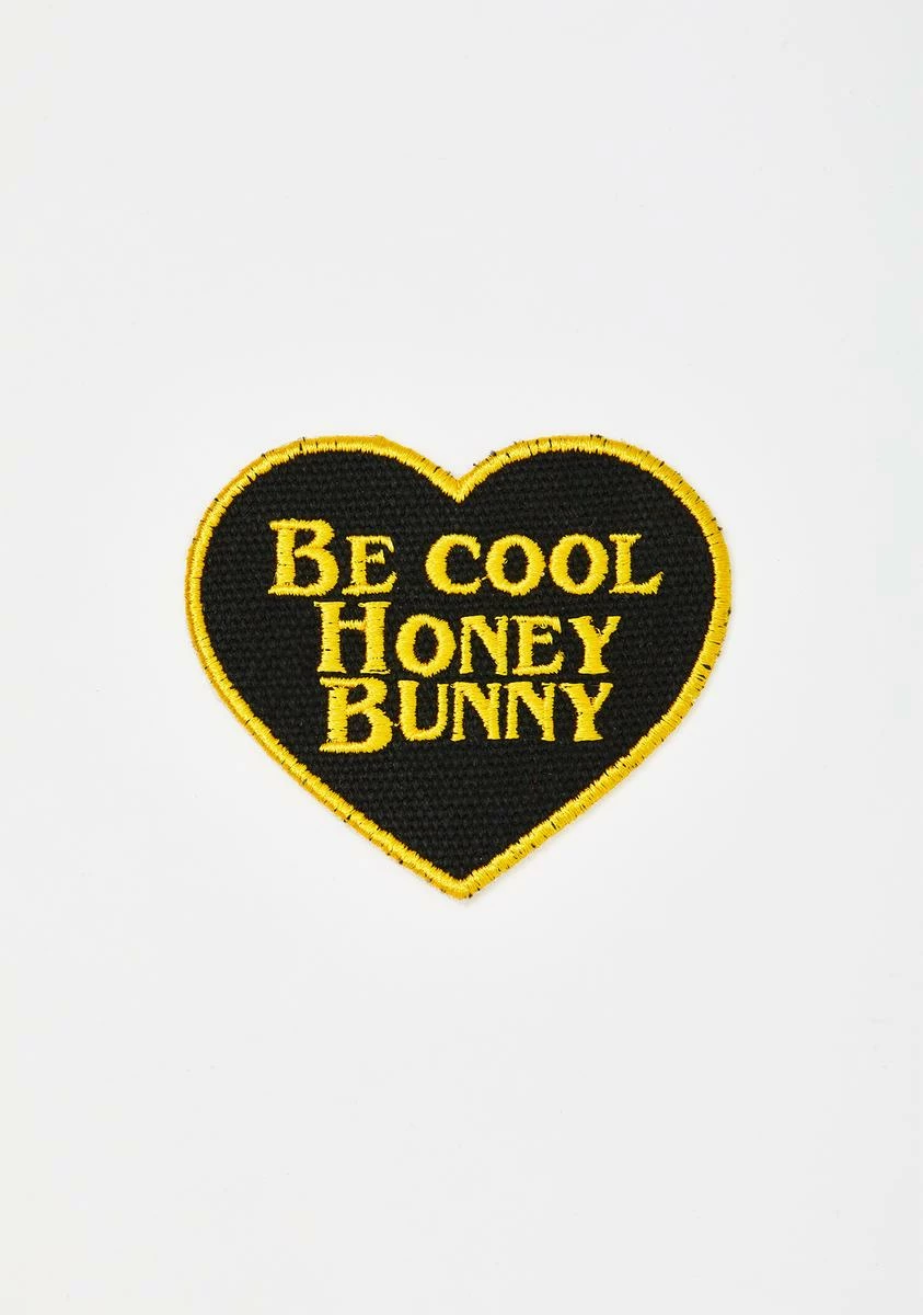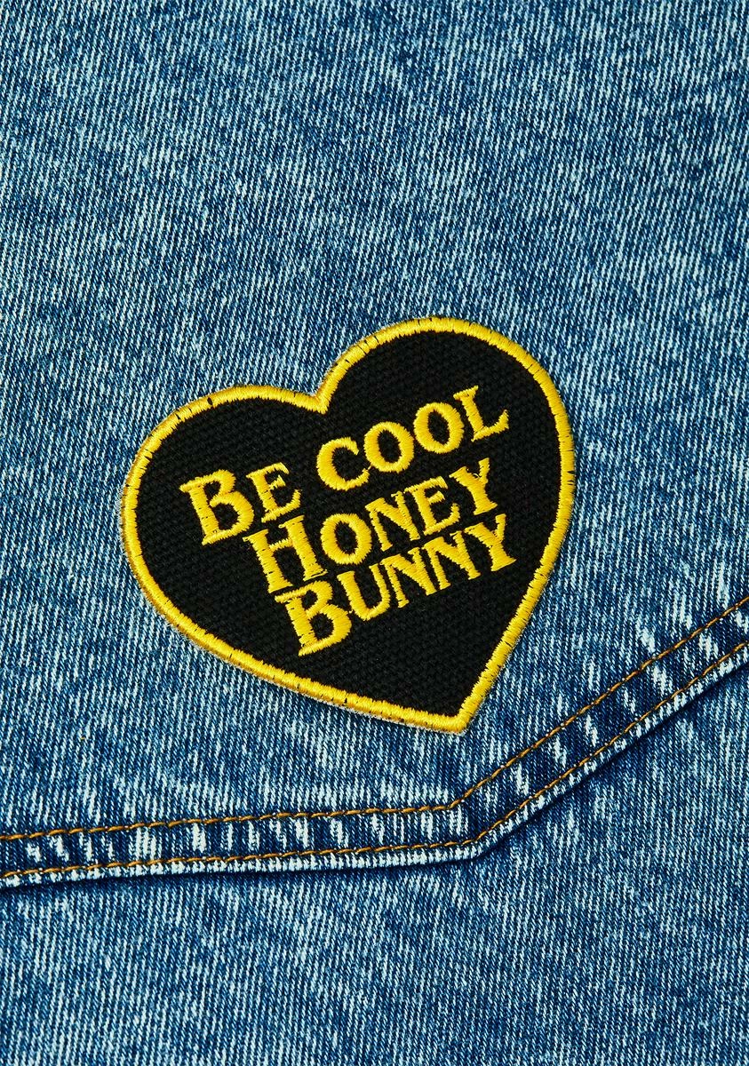 cuz youâre harshing the vibe! Keep calm with this Pulp Fiction inspired heart-shaped patch that says âBe Cool Honey Bunnyâ and is supa easy to iron on to yer ish.