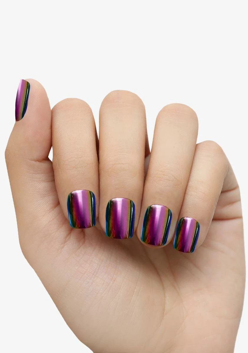cuz u got some wicked tricks up your sleeve, bb! Have them totally under your spell while wearing these prismatic mirror press on nails that are totally reflective and come with a cuticle stick, mini nail file and nail glue.