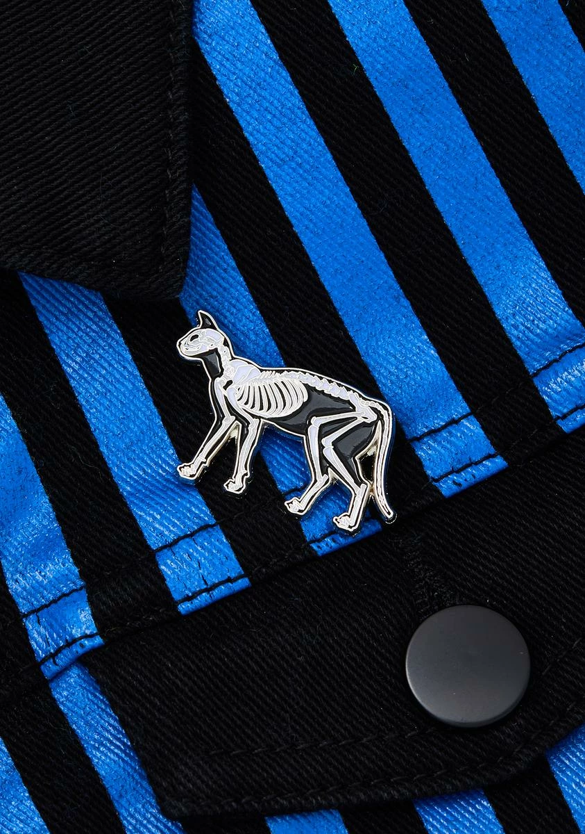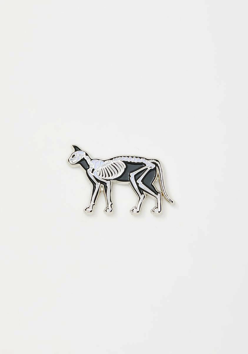 keepin’ it spooky all year round! You’re a sucker for a pretty kitty N’ this enamel pin is shaped as a cat whose bones glow in the dark.