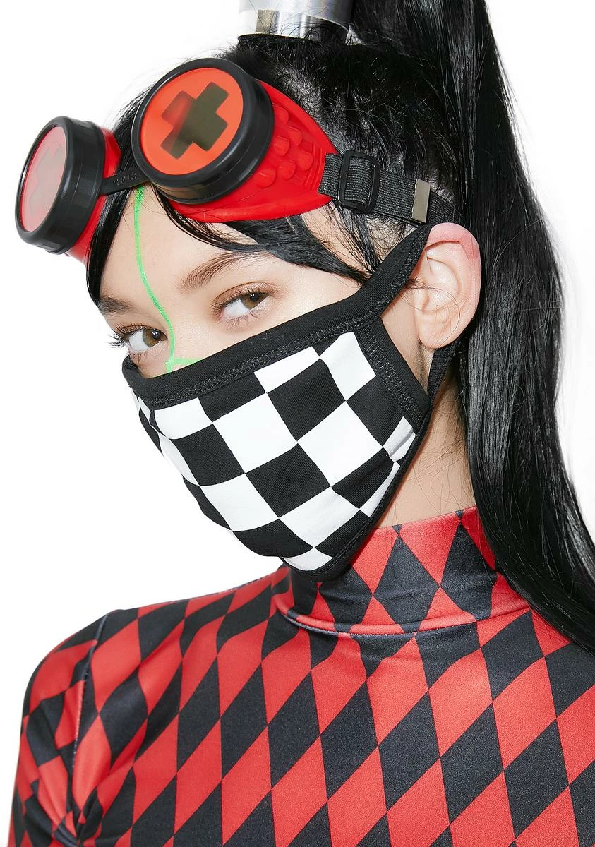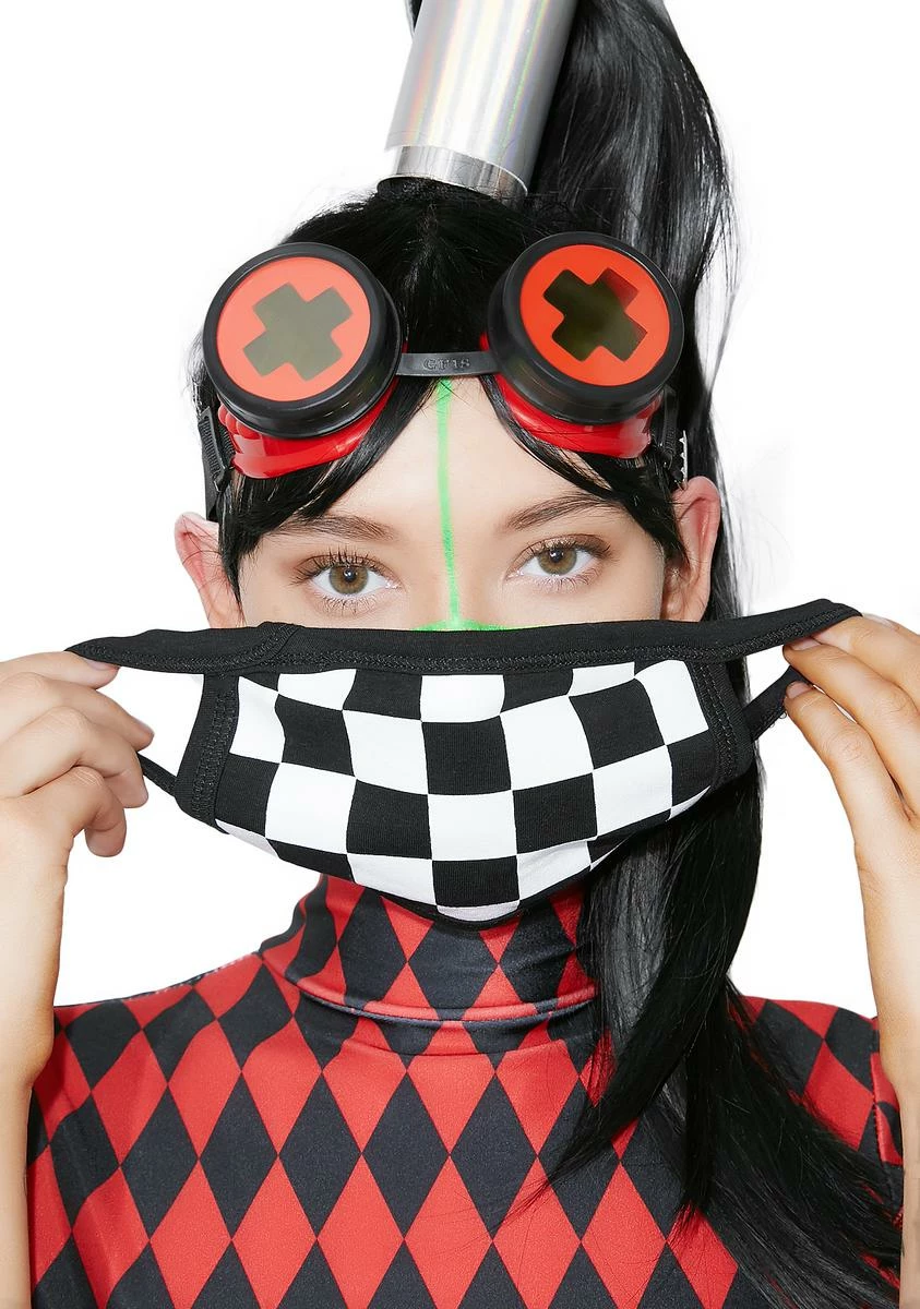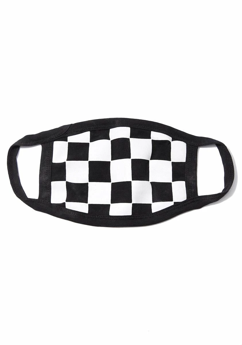 will have ya ready to party. This face mask has a black NΓ’ΒΒ white checkered print with straps that comfortably wrap around your ears.