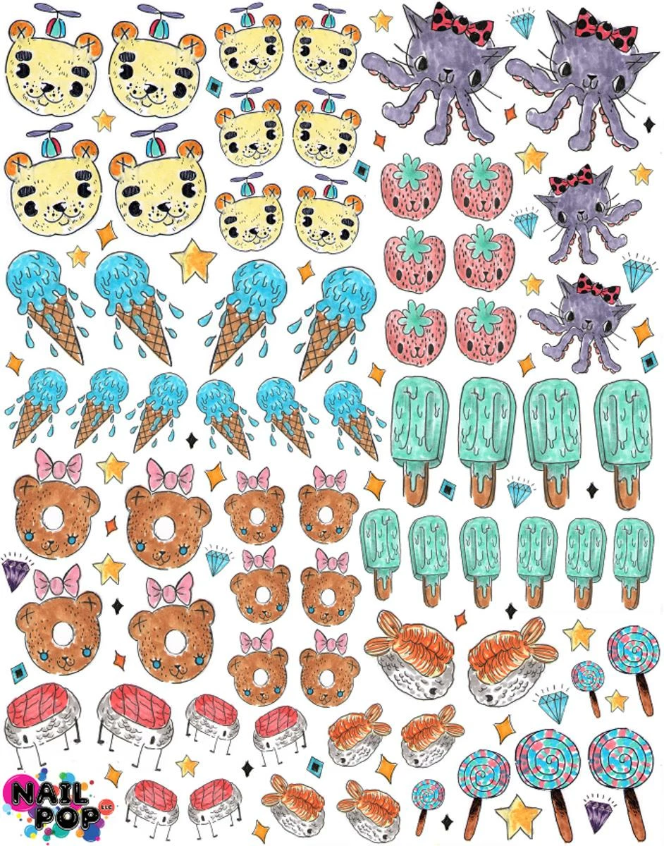 Nail Pop x Dolls Kill Space Treats Nail Decal is why shrooms are great when yer hungry. These xXxclusive collaboration nail decals were conceptualized by Erin Hart just for you dolls. These BBZ are so easy to apply, just cut out the design you want and place it in water for 15-20 seconds, then remove from the water with tweezers. Slide off the paper backing, and place the decal on yer nail where you want it, then paint over a few times with a clear top coat. With tons of individually illustrated prints to choose from, including octo and donut cats, kawaii sushi, melty popsicles, and candy galore, you might start a nail biting habit if ya get the munchies.