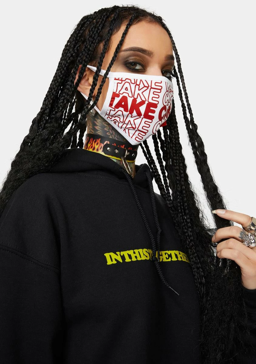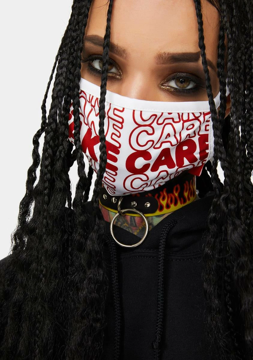 cuz you deserve a break. This face mask says the phrase take care.