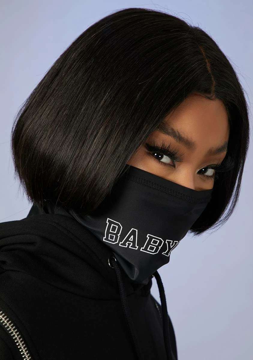 because you have to keep it low key. This face mask has the phrase Baby Girl on it.