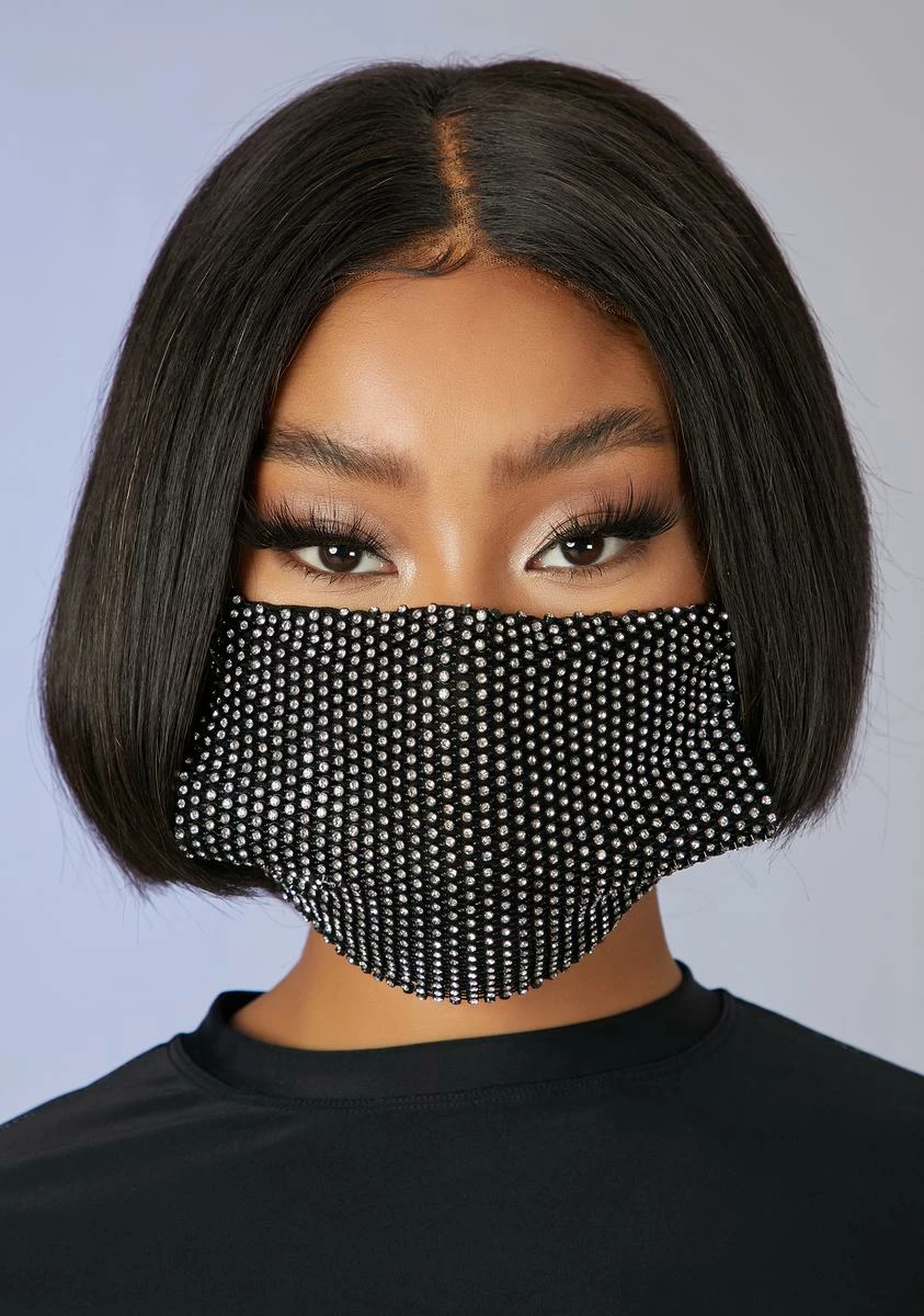 cuz youâre on a whole nother level, baby. This glitzy protective face mask has a rhinestone bedazzled construction and stretchy earbands for a comfy, secure fit.