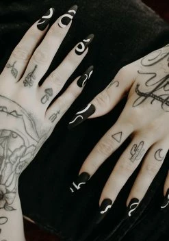 cuz you leave them paralyzed. These press on nails have snake designs and come in a pack of 24 with a nail file and glue.