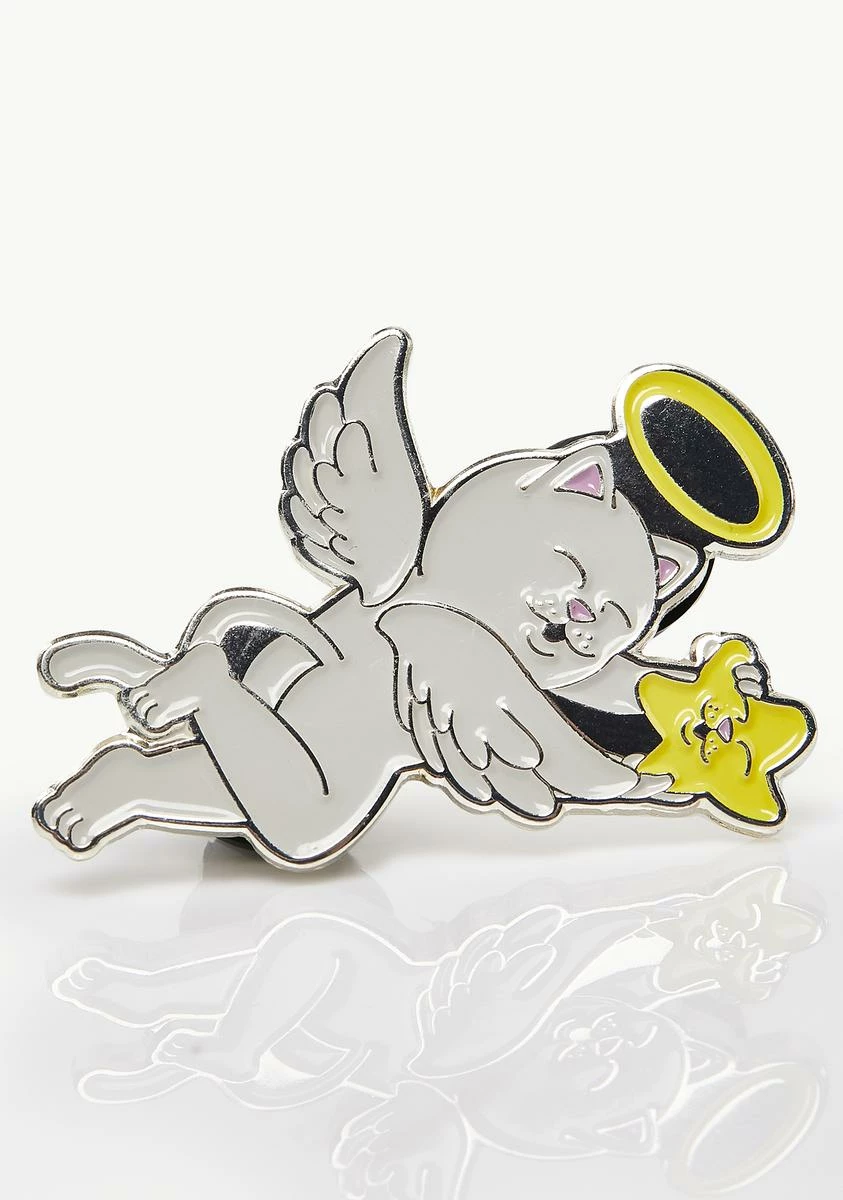 will rock you to sleep. This enamel pin has an angelic Nermal holding a star at front and double posts with rubber clasps at back.