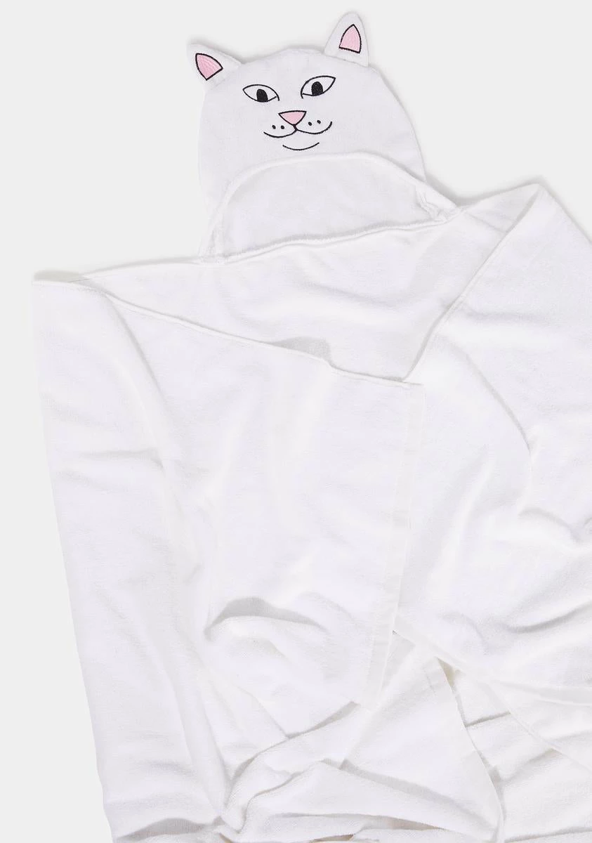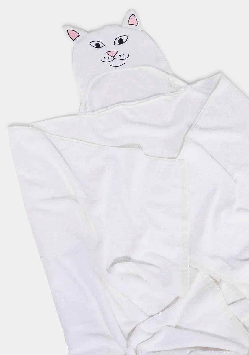 keep your noggin dry! This hooded bath towel has a Lord Nermal embroidered face.