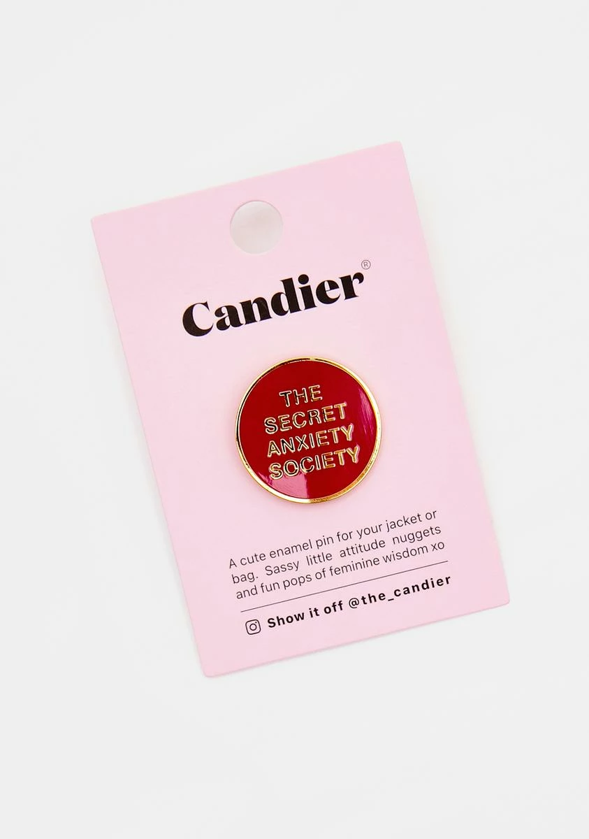 cuz you don’t want anyone to know. This enamel pin says the secret anxiety society.