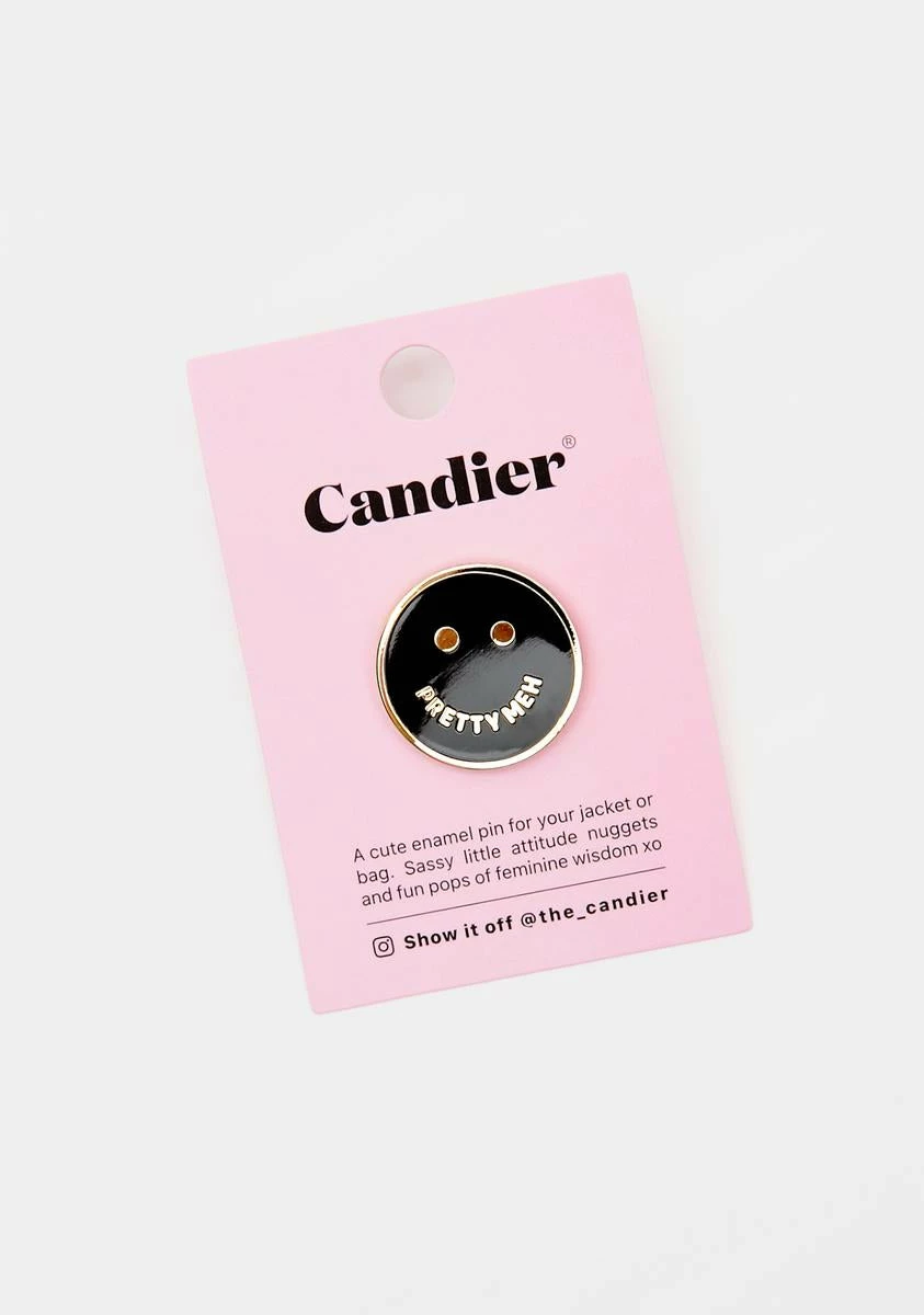 cuz you put a smile on everyone’s faces. This enamel pin has a smiley face with the phrase pretty meh.