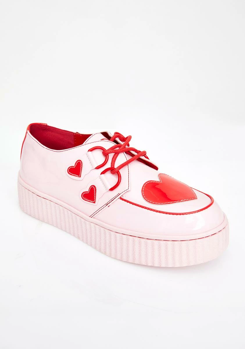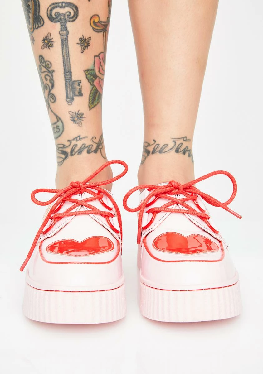 will have ya feelinâ like the ruthless kween you really are. These krazy kute patent vegan leather kreepers have hearts all ova, stacked platform soles Nâ licorice laces.