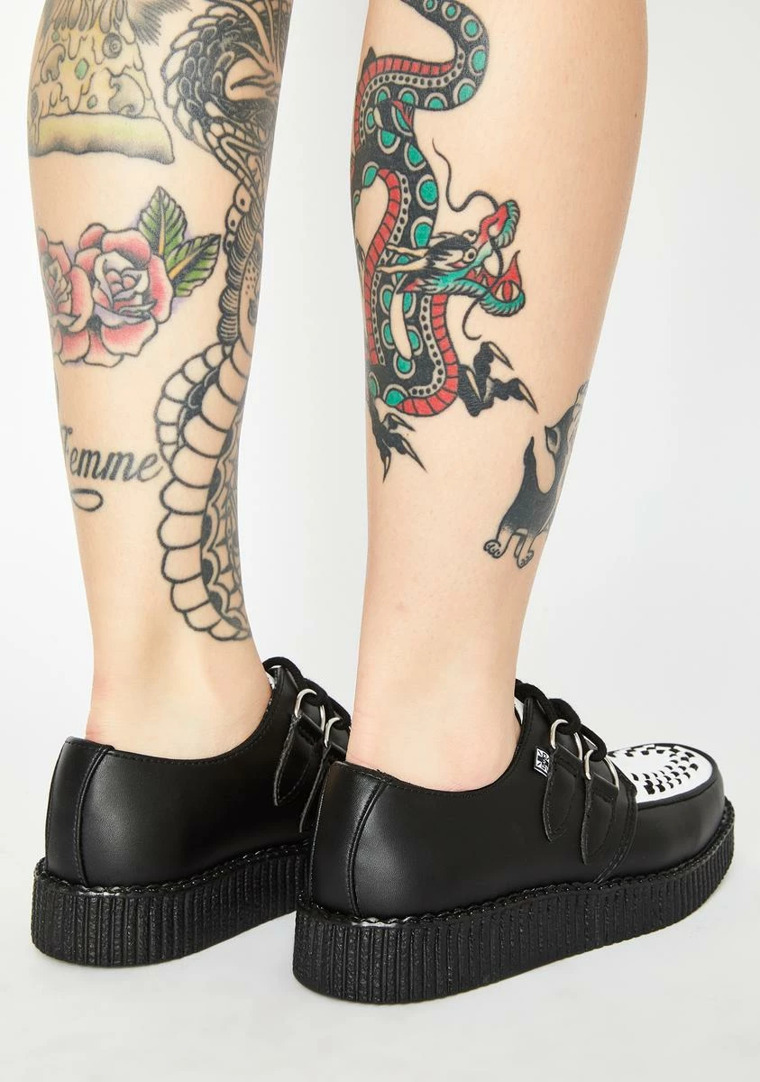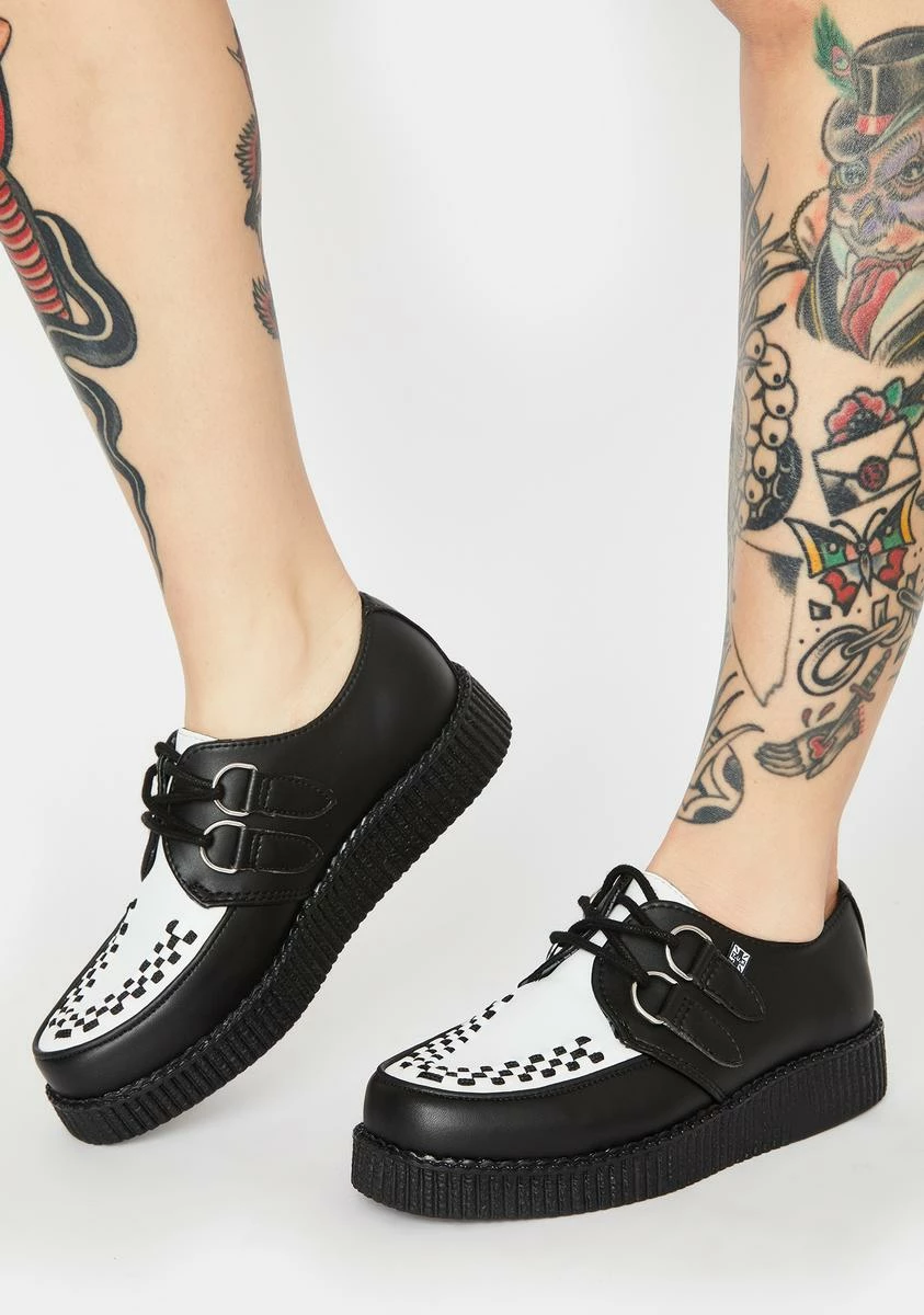 Be the first to review “T.U.K. Black N White Viva II Low Lace Up Creepers” Cancel reply