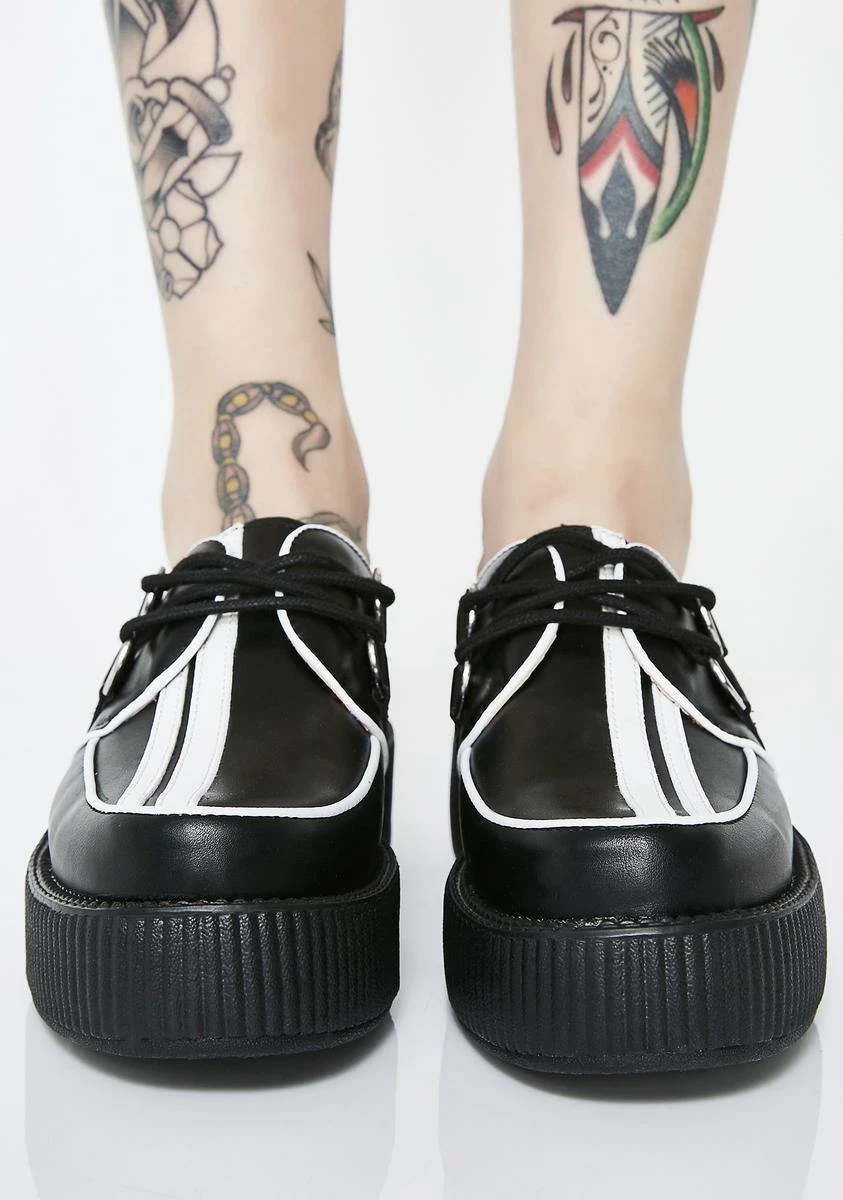 cuz youΓ’ΒΒre ready to get cray in the mosh pit! Step right in with these sikk creepers that have a white stripe detail on the front, a checkered flag detail on the sides, comfy rubber platforms and lace-up closures.