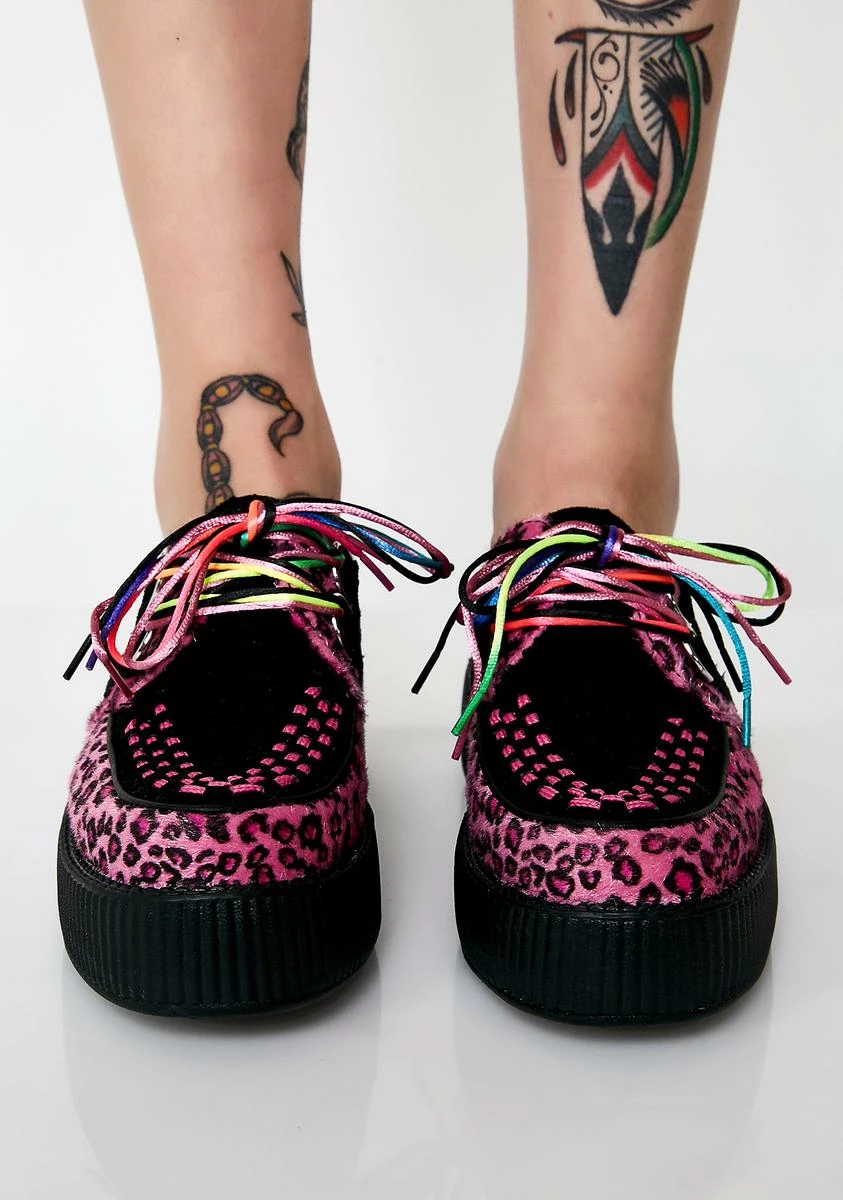 cuz you follow your instincts. These cute af creepers have a pink leopard print, thikk platform soles, and lace-up front closures.
