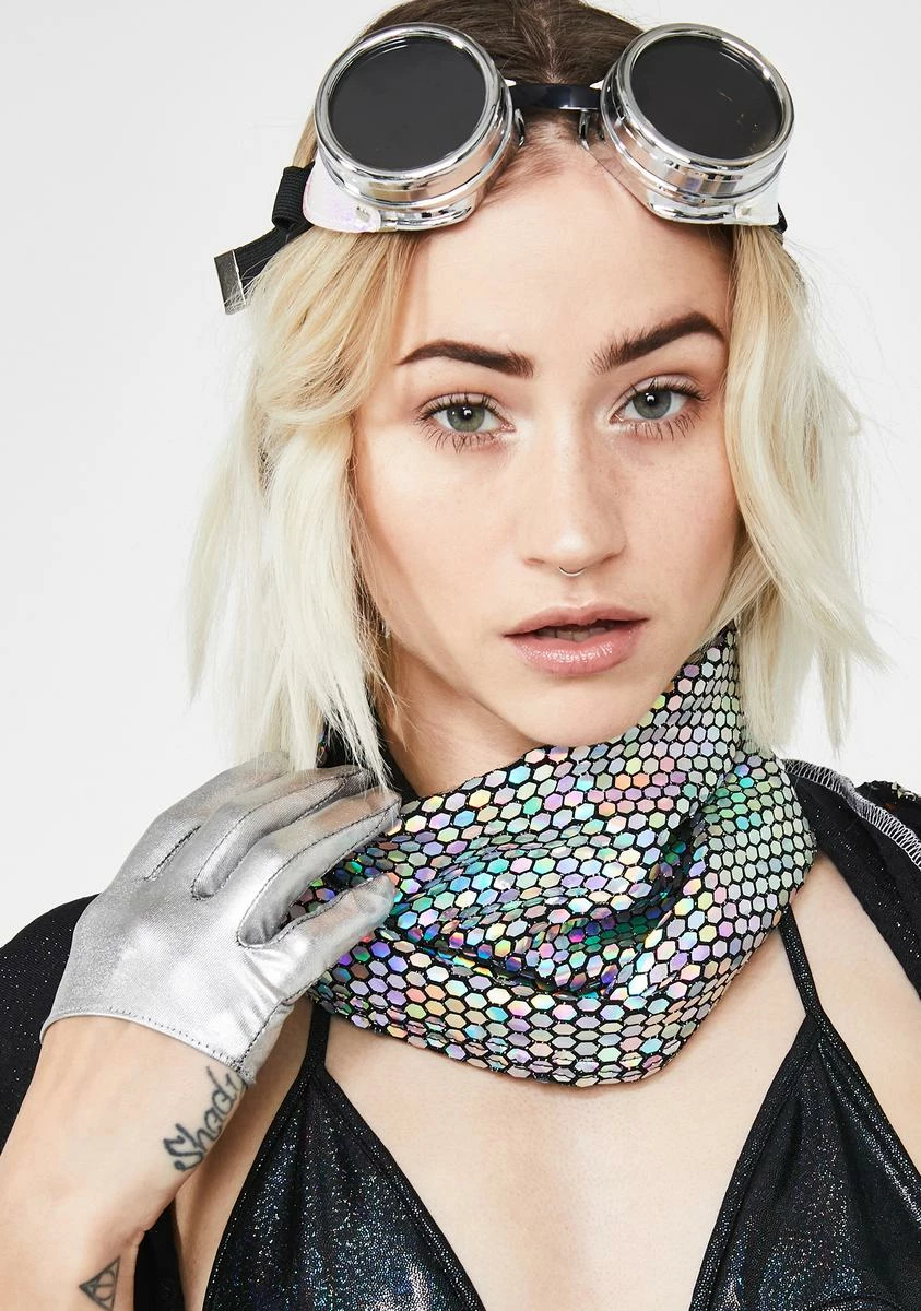 will have all eyes on you babe! Take their breath away in this handmade face mask that has a show-stoppin’ holographic shimmer, an adjustable elastic back and a velcro closure.