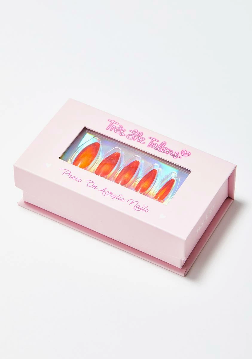 oh la la babe. Tell ‘em ring the alarm in these smokin’ hott press-on acrylic nails that have a natural curve, trendy jelly design N’ lux glossy finish. Apply n’ trim em to any shape with the cuticle stick, nail file and nail glue that comes with ’em.