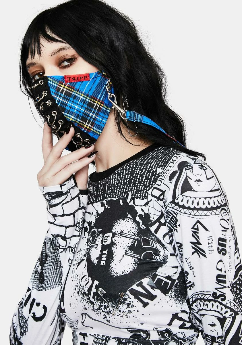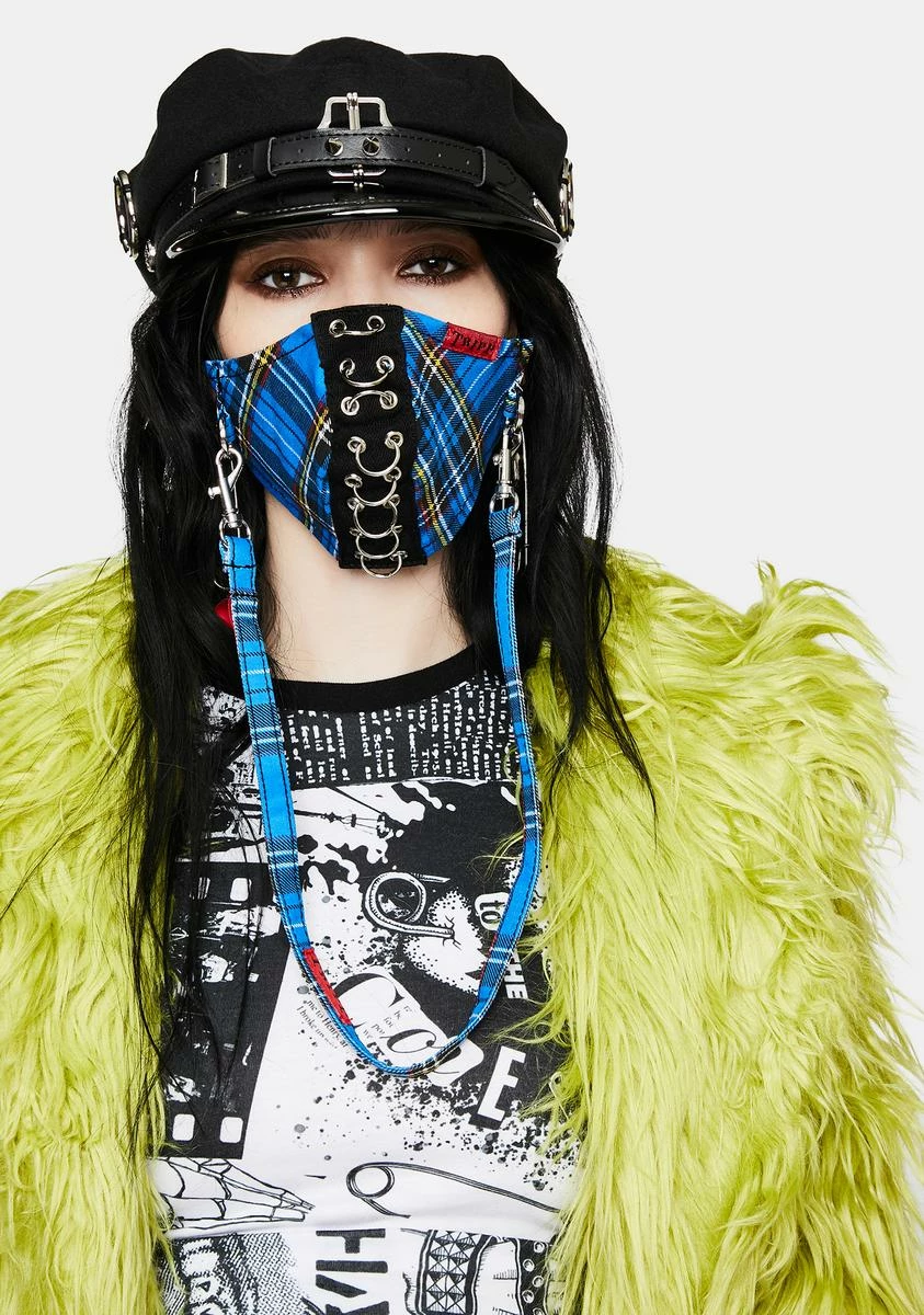 TRIPP NYC Blue Plaid Piercing Face Mask