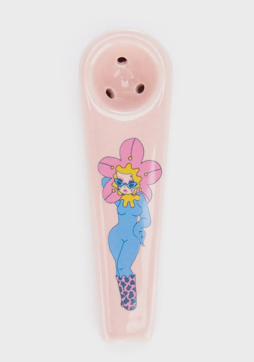 cuz be an april flower. This pipe comes in a ceramic construction, original artwork, and comes with a bag to store it in. Each pipe is handcrafted so items may vary.