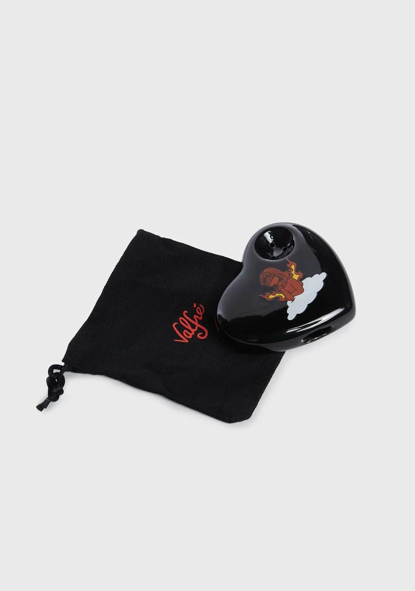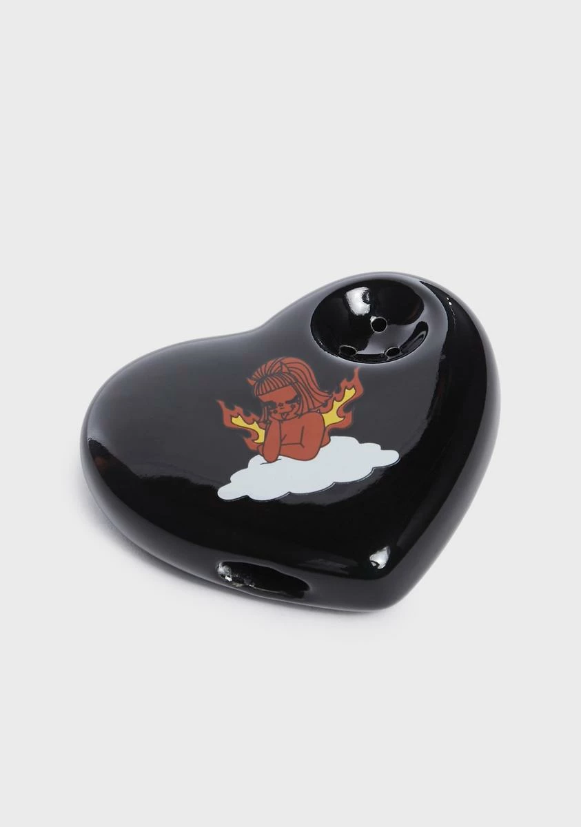 bad girls go everywhere. This pipe comes in a ceramic heart construction, with original devil artwork, and a baggie for storage. Each pipe is handcrafted so items may vary.