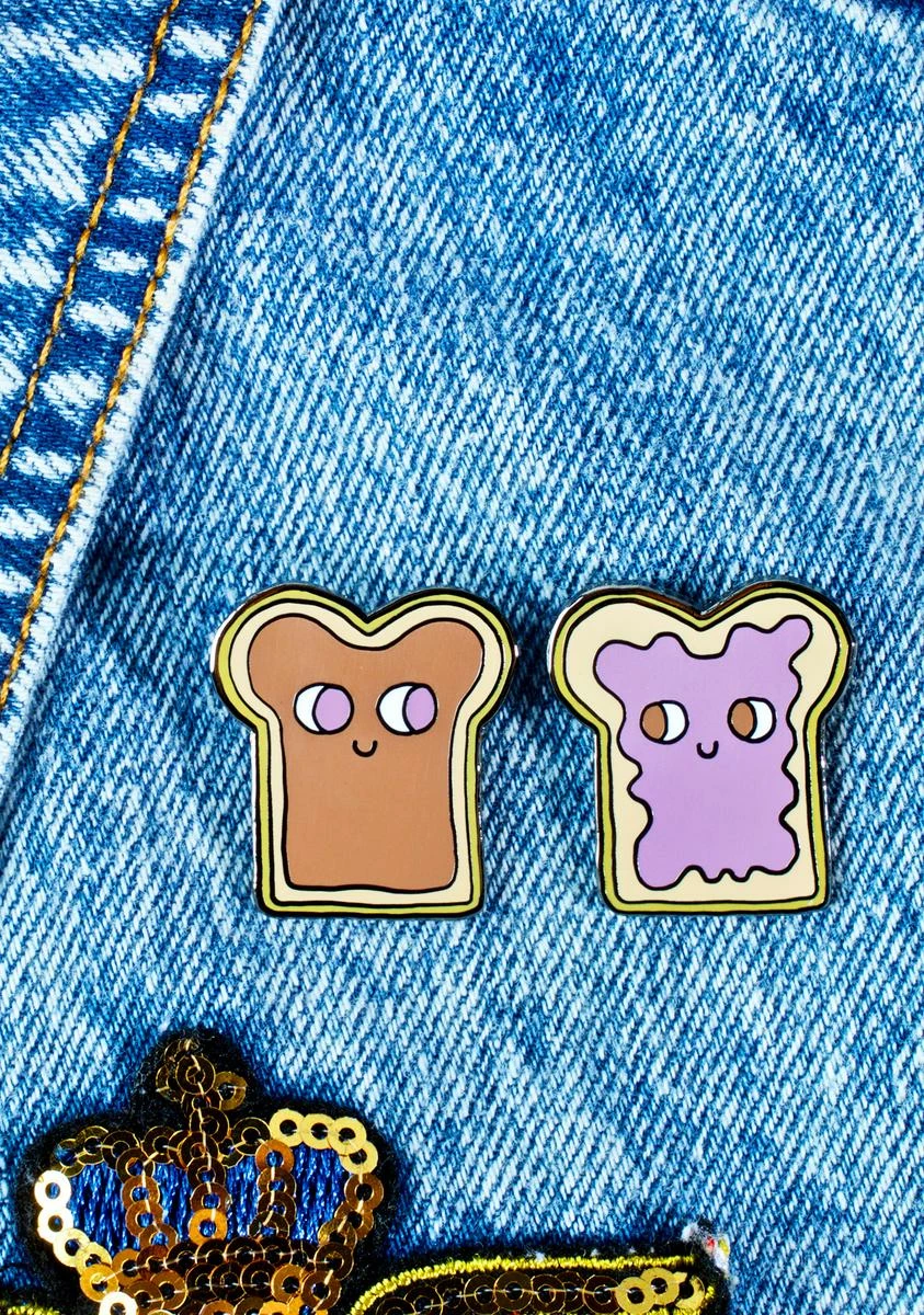 cuz there’s no better pair, bb! This adorable pin set feature two pieces of bread spread with peanut butter ‘N jelly for ya to share with yer other half.
