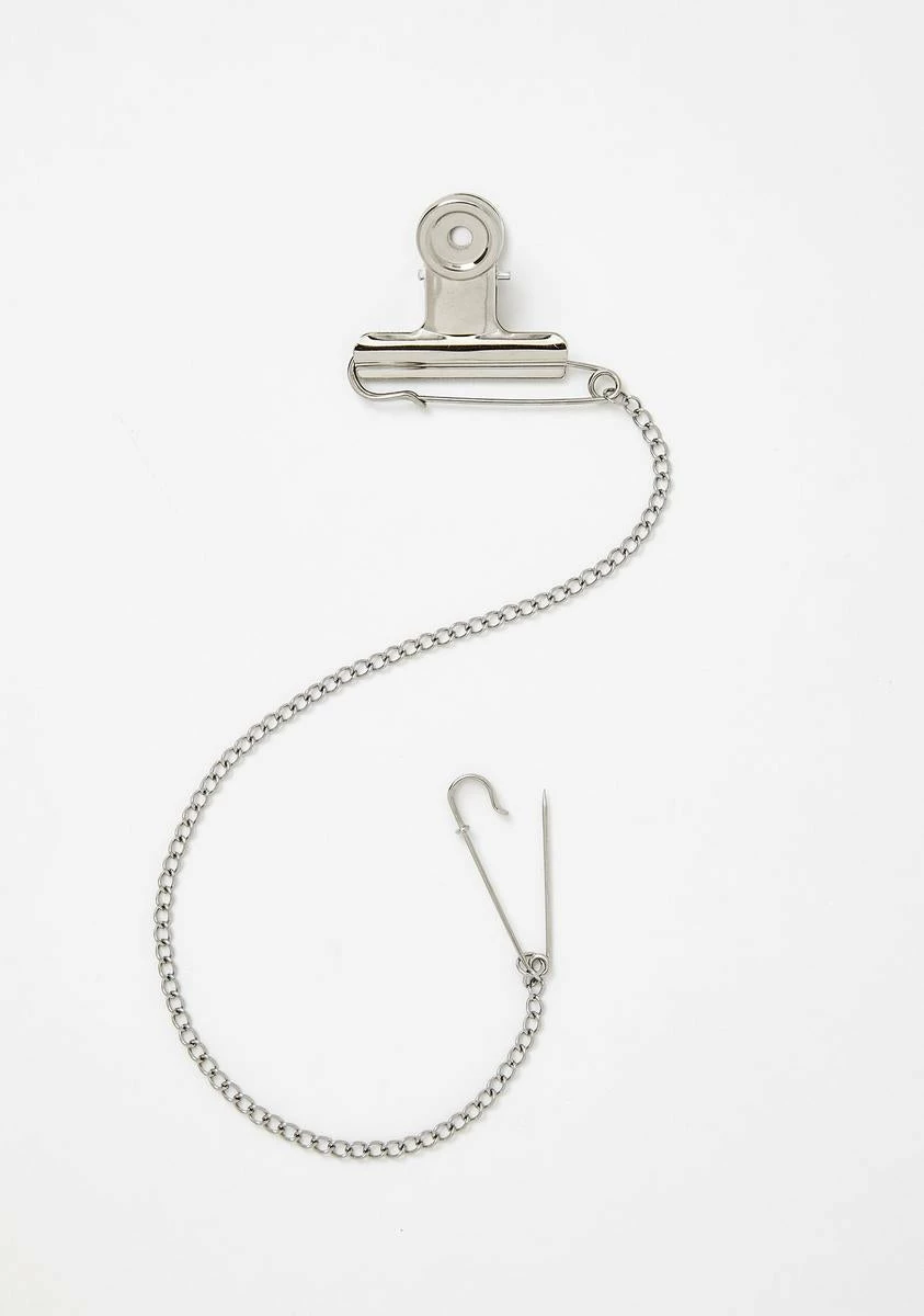 gotcha livinâ up the grunge life. This sikk clothes clip has a platinum chain construction and safety pin closures.