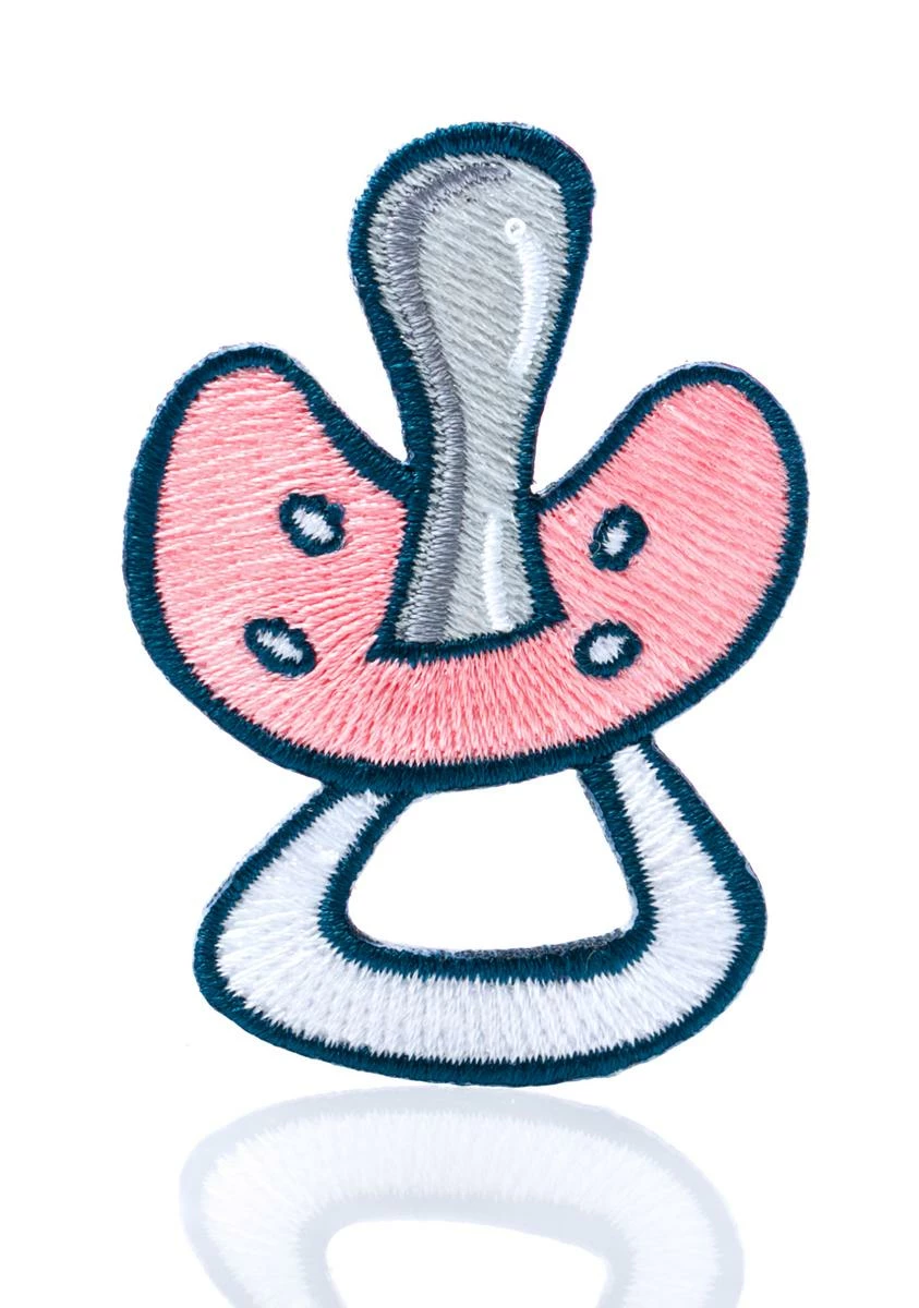 chew on this, dude! Make sure yer not grindin’ too hard by slappin’ this cutesy pacifier patch on yer favorite jacket, vest, or pair of jeans.