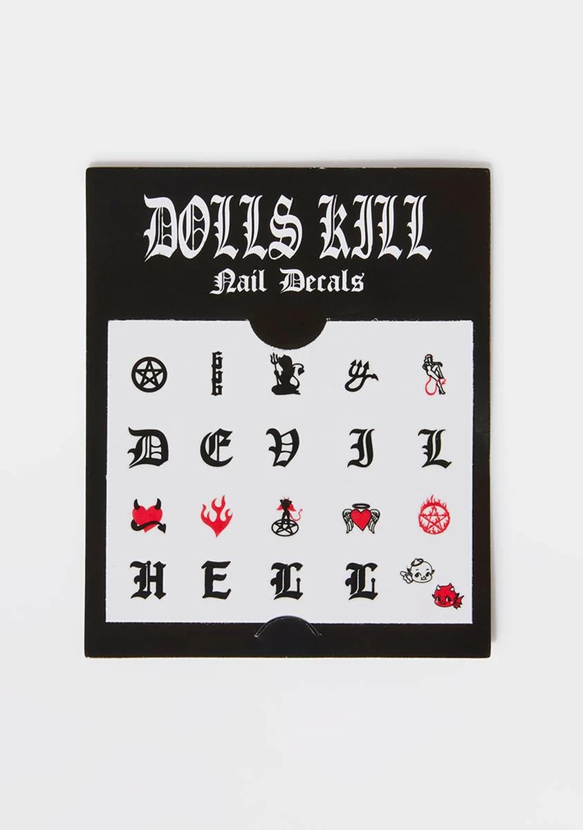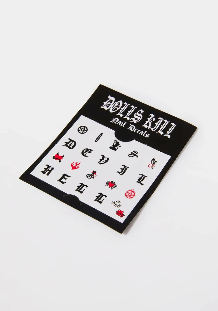 cuz you’re always bringing the heat. These nail decals have tattoo word graphics and devilish designs.
