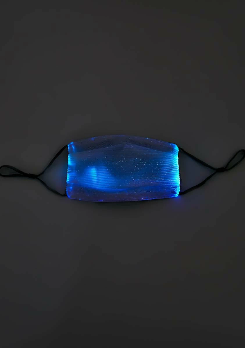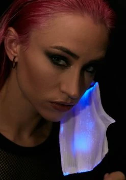 has a fishnet overlay, adjustable earbands and a LED light up design with a side switch.
