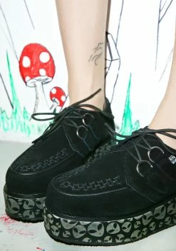 cuz youΓ’ΒΒre always up to no good babe! Got Γ’ΒΒem on ya tail in these dope vegan suede creepers that have leopard details on the tops NΓ’ΒΒ lace-up closures.