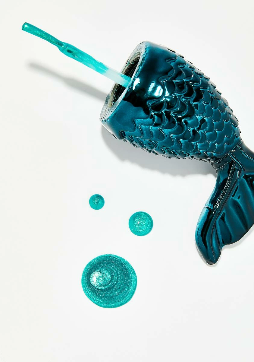 cuz youâre a queen of the seas babe! Swim through magical oceans with this nail polish that has a metallic finish, a mermaid tail handle brush, and long lasting wear for your deep sea beauty needs.